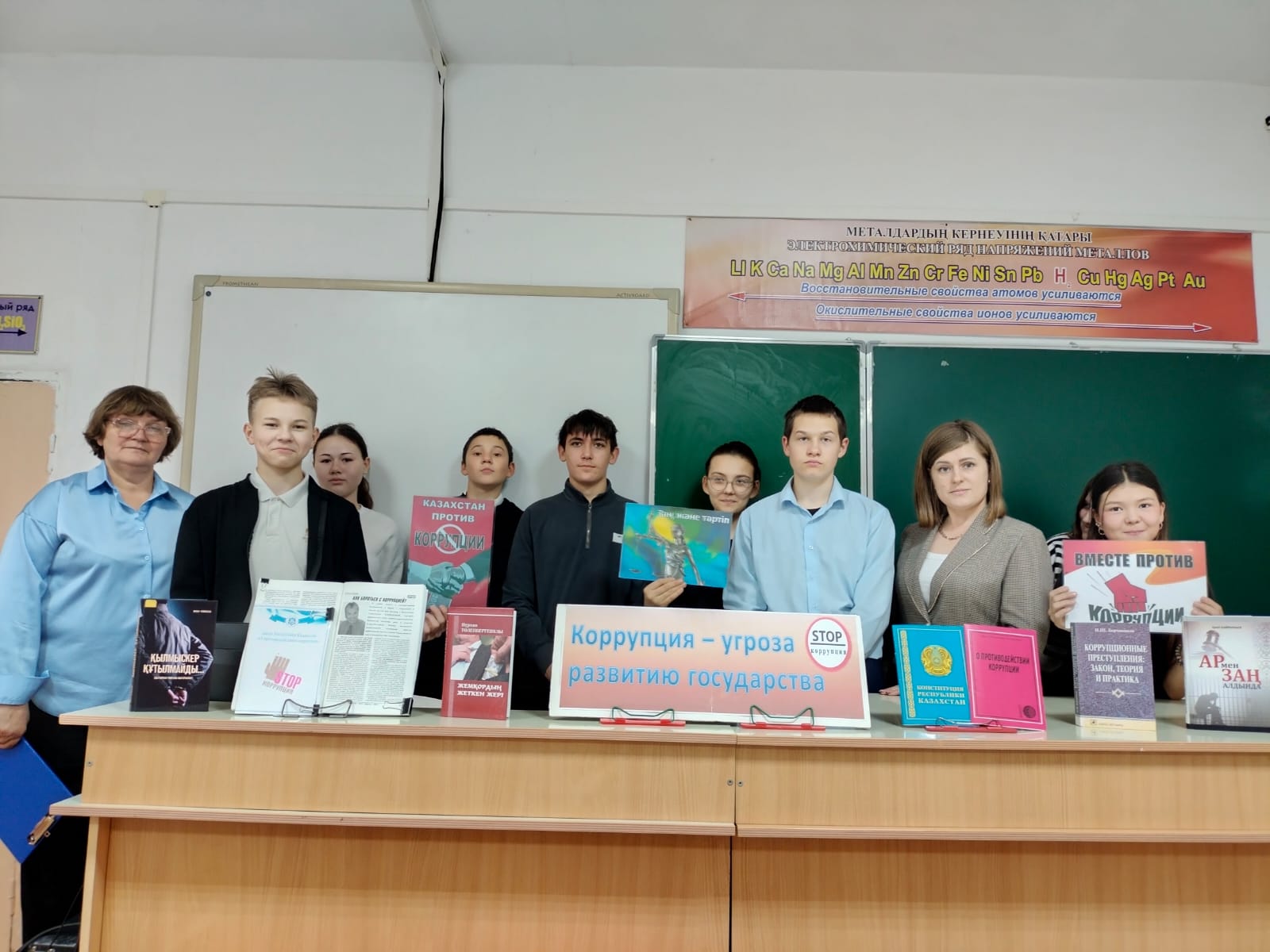 7 ноября Мамлютская районная библиотека провела для учащихся девятого класса Мамлютской средней школы №3 актуальный разговор «Коррупция: природа, проявление, противодействие».